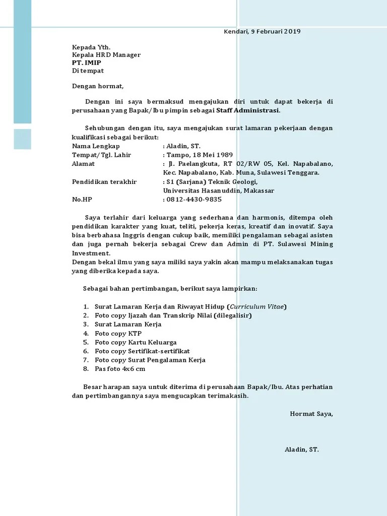 Lamaran pekerjaan imip morowali contoh surat lamaran kerja pt imip morowali contoh surat lamaran kerja imip indonesia morowali industrial .